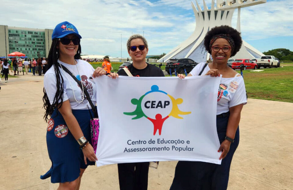 A concentração iniciou às 8h, em frente ao Museu Nacional, no Setor Cultural Sul, com saída da marcha rumo ao Congresso Nacional. Cíntia Melo e Mariana Bilac dos Santos representaram o CEAP Na atividade em Brasília, acompanhadas de Anair Silva da Rosa, associada da entidade.